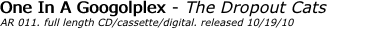 free downloads "Monolith" visit One In A Googolplex's myspace for more info. Press: "Don’t make the mistake of not listening to these songs." - Neo-Noir "One in a Googleplex is embarking upon a sound that could place them in the status of a pop emissary." - 15on15 "A solid release to try to get your hands on." - The Cool Deal "A wonderful mixture of sunny indie pop and electronic 8bit squeaking." - You Sound Great "This album has an incredibly cool and original sound."- Mean as a Rattlesnake "Dreamy, melodic, accented perfectly by soft, harmonic vocals and a piano – a nice mellow surprise from Germany." - Indie Rock Cafe “C’est bien, les Dropout Cats.” - SophieRandR |